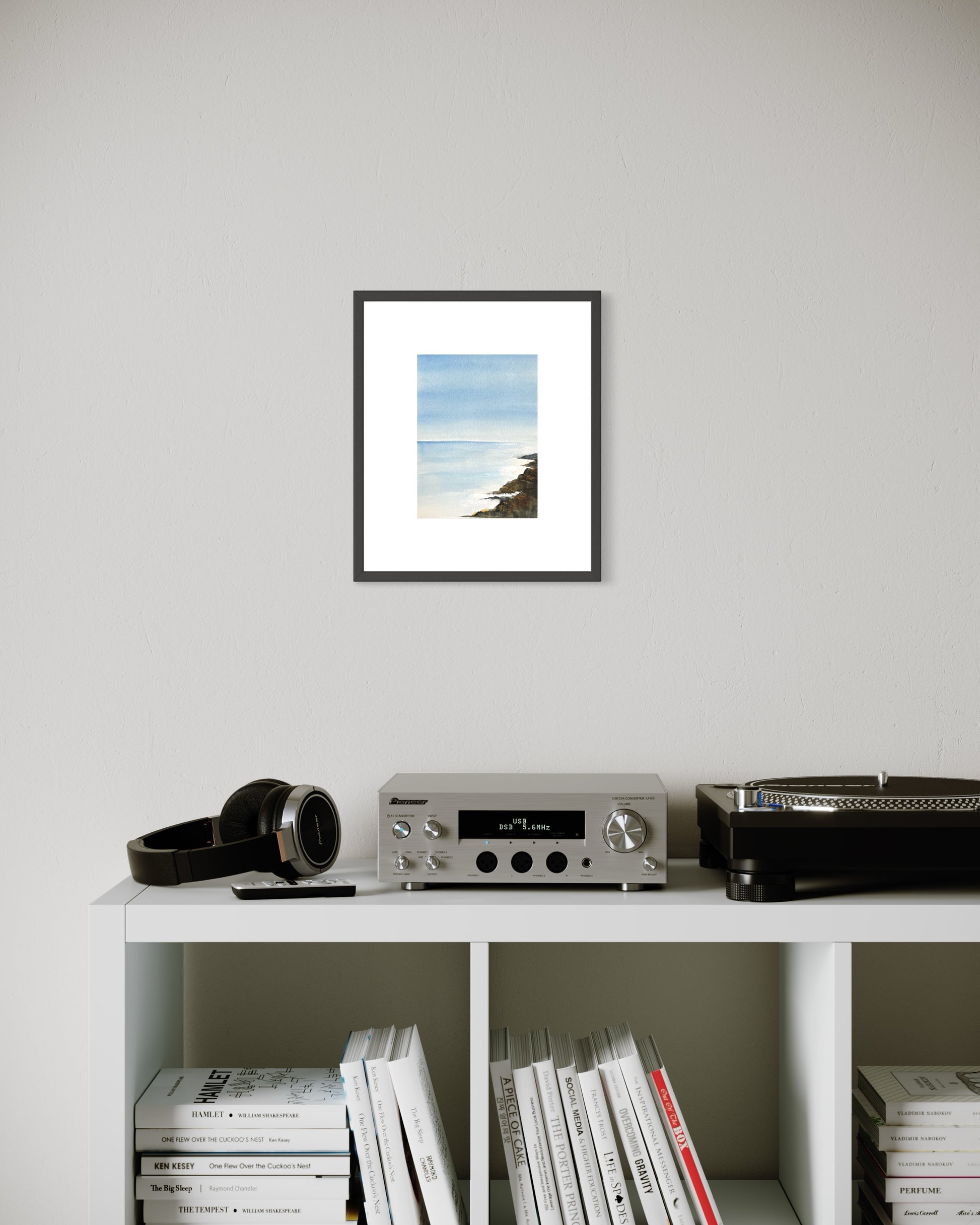 In the picture the painting is framed with option passepartout. I would also recommend the option of framing "levitating" showing the beautify raw edges of the paper.